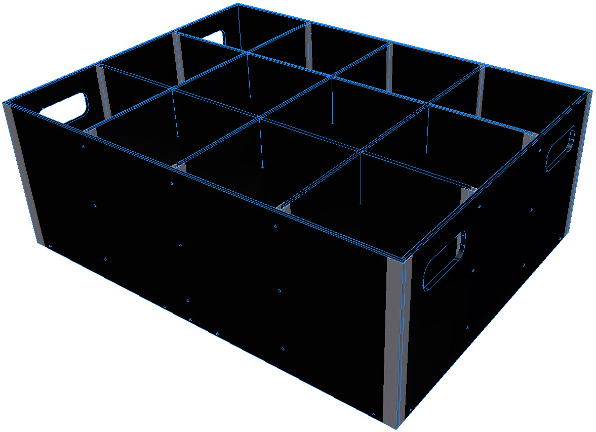 - Schnelle Anpassbarkeit: Dank parametrischer Konstruktion lassen sich Masse wie Länge, Breite, Höhe oder Innenaufteilung einfach definieren.