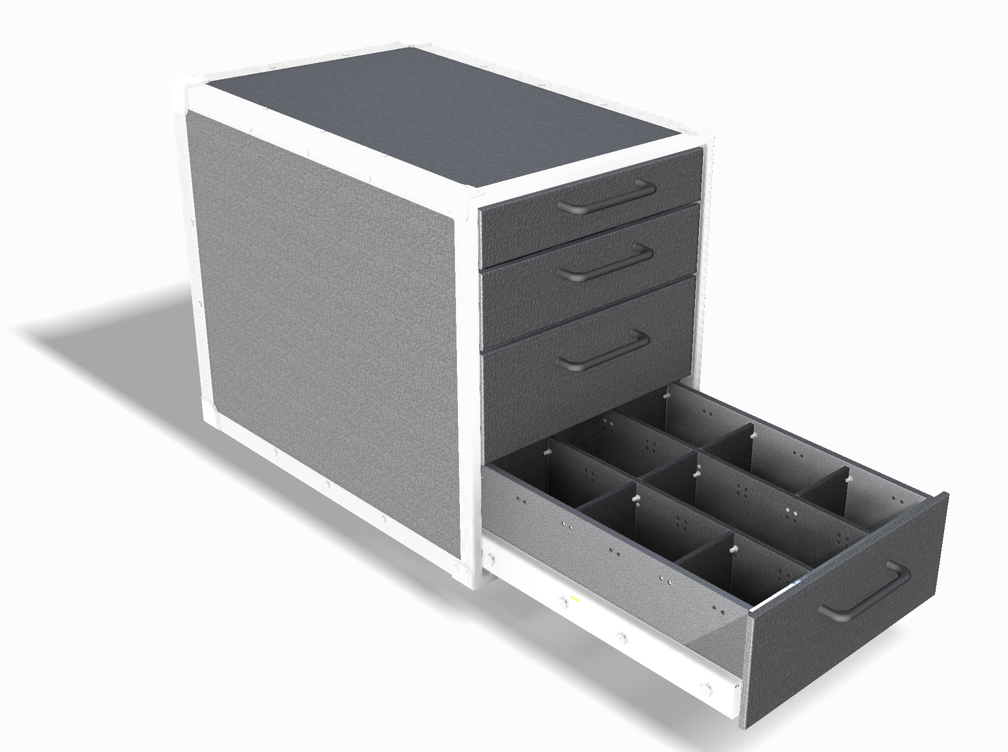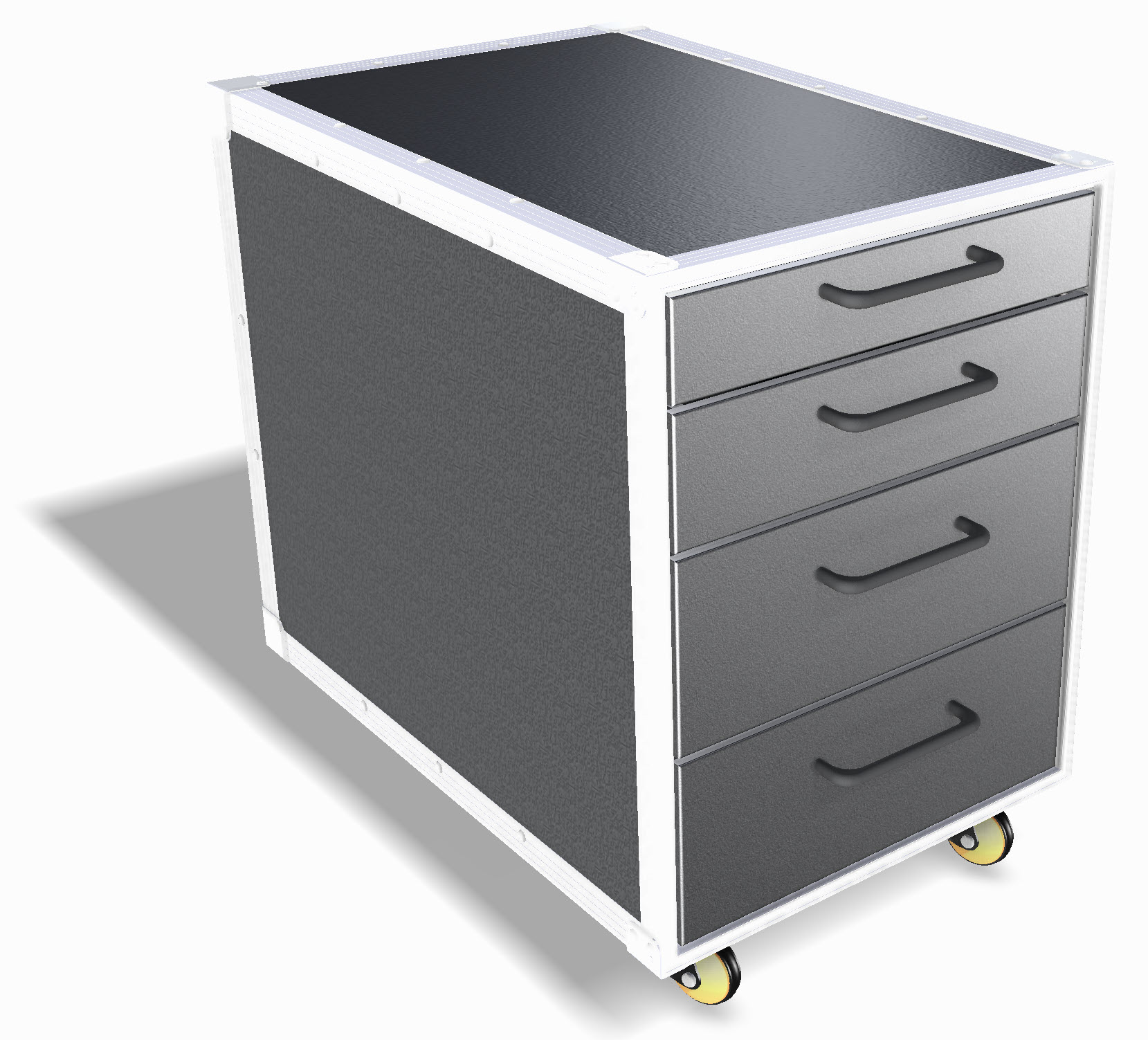 Der Flightcase Rollcontainer verbindet praktischen Stauraum mit markantem Industrial Design. Gefertigt aus originalen Flightcase-Materialien – robustes Birkenmultiplex, eloxierte Aluminiumprofile und verstärkte Metallecken – überzeugt er durch Stabilität, Langlebigkeit und den unverwechselbaren SwissCase-Look.