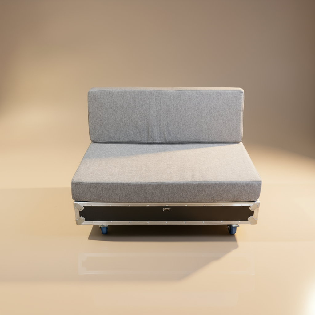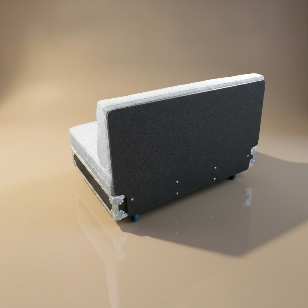 Das Flightcase Sofa verbindet Industrial Style mit modernem Design und bietet maximale Flexibilität. Gefertigt aus originalen Flightcase-Materialien – Birkenmultiplex, Aluminiumprofile und Metallecken – ist es extrem robust, langlebig und authentisch.